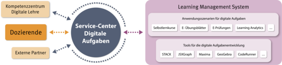 Das Service-Center Digitale Aufgaben unterstützt Sie dabei Ihre Lehranliegen mit digitalen Mitteln umzusetzen. Wollen Sie mehr Übungsmöglichkeiten schaffen, mehr individuelles Feedback geben und Pflichtübungen oder Klausuren digitalisieren? Wir beraten und unterstützen Sie in diesen Angelegenheiten mit unserer Erfahrung in der Entwicklung digitaler Aufgaben.